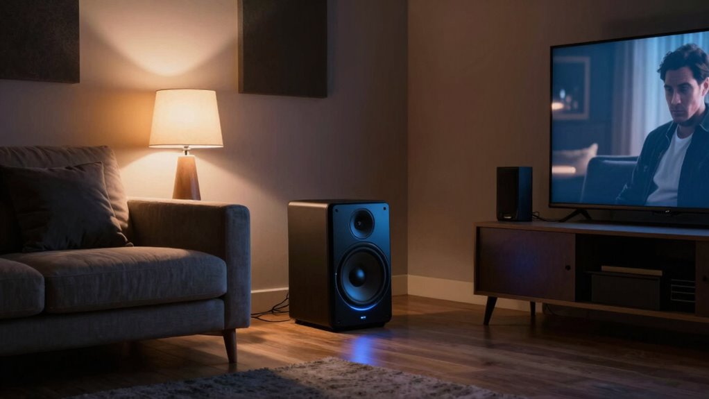 So, here you are, struggling to enjoy your favorite shows quietly, yet ironically, it’s often at night when sound becomes most precious. By balancing bass and dialogue, you might think you’re sacrificing quality, but in reality, you’re saving your sanity—and your ears. Who knew that keeping things low could turn out to be the loudest act of self-care? Sometimes, the quietest setups create the most unforgettable moments—without waking the whole house.