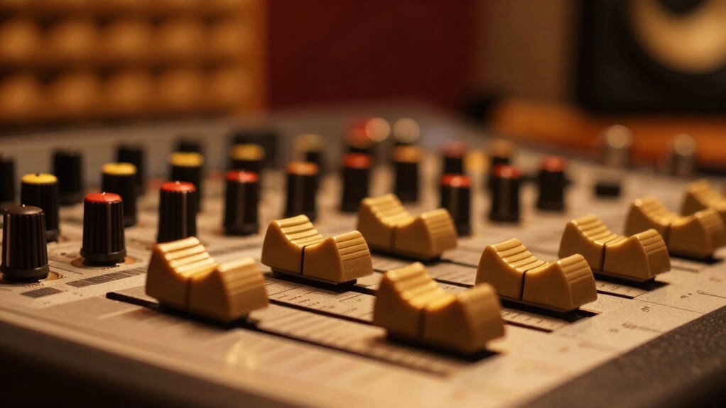 Think of your sound profile like a cozy fireplace—when tuned just right, it radiates warmth without becoming muddy. I once worked with a producer who turned down harsh highs and gently boosted bass, transforming a sterile mix into a rich, inviting sound. Remember, creating warmth isn’t about adding clutter; it’s about balancing your elements carefully, like seasoning a perfect dish. With patience and finesse, you’ll craft a sound that feels as comforting as a fireside chat.
