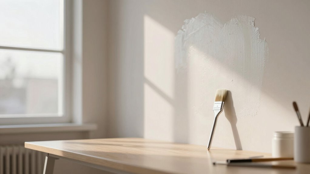 For a successful touch-up, you should select tools and products that match your existing setup. Use a quality paintbrush or small roller for precise application, and choose paint that closely matches your current color through color matching tools or samples. Opt for high-quality touch-up kits designed for your surface type. Proper tool selection guarantees a seamless finish, making your setup look freshly finished with just a simple, effective touch-up.