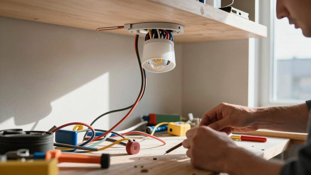 You need the absolute essentials for professional installation, starting with a thorough installation checklist and top-tier safety gear. A voltage tester, wire strippers, insulated screwdrivers, and a multimeter are must-haves to guarantee precise, safe work. Don’t forget sturdy gloves, safety glasses, and a hard hat—these are your shield against danger. Skipping any of these tools could turn a DIY project into a disaster, so gear up for safety and success.