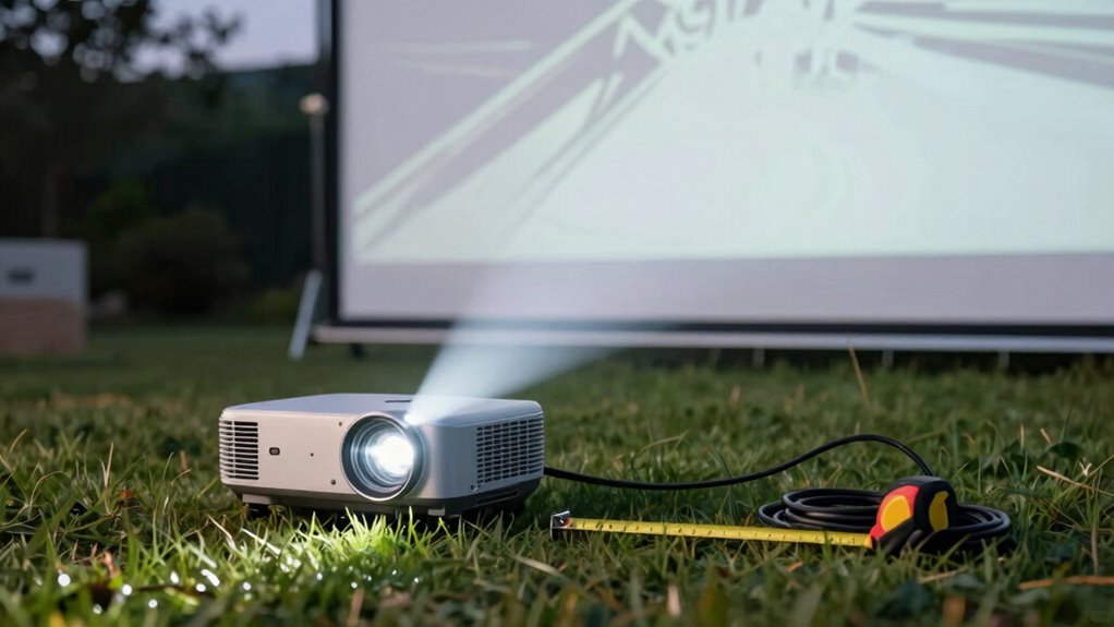 Ever wondered how to quickly determine the perfect throw distance for your setup? It’s a common challenge that can turn into hours of frustration if you’re not cautious. The key to streamlining your installation lies in understanding projector calibration and screen placement, which directly influence the ideal throw distance. When you start with a clear plan for these, you can avoid guesswork and save yourself a ton of time. Proper calibration isn’t just about image quality; it’s about ensuring that your projector is aligned to produce a sharp, correctly sized picture at the right distance. Most projectors have a throw ratio, which is the ratio of the distance from the projector to the screen to the width of the image projected. By knowing this, you can easily calculate the perfect placement without trial and error. Many projectors come with lens shift and zoom features that allow fine-tuning, but these are most effective when you’ve already identified the right starting point based on your screen size and room layout. When you calibrate correctly, your projector’s lens settings and image adjustments work in harmony, reducing the need for constant repositioning. Additionally, understanding the throw ratio helps you quickly determine the optimal distance for your setup, saving you time and effort. Next, consider your screen placement. The placement of your screen isn’t just about aesthetics; it’s about function. A well-placed screen allows you to set the projector at the right distance, matching its throw ratio for a crisp, properly scaled image. To do this efficiently, measure your available space and match it with the projector’s throw ratio. For example, if your projector’s throw ratio is 1.5:1 and your screen width is 100 inches, your projector should be approximately 150 inches away from the screen. This calculation gives you a solid starting point. Once you’ve established where the projector should go, you can make minor adjustments during calibration to perfect the image size and clarity. Proper screen placement also minimizes keystone distortion and ensures a comfortable viewing experience.
