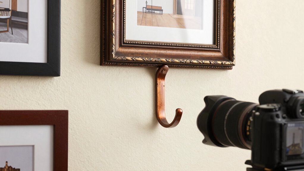 In addition, periodically inspect your hanging hardware. Over time, wall anchors and hooks can loosen, especially if the picture is frequently bumped or if the wall shifts. Tighten or replace any loose hardware promptly to maintain stability. Remember, the key to preventing your pictures from shaking off the wall is to guarantee proper weight distribution and secure anchoring. When done right, your artwork will stay put, and your walls will stay looking sharp, without the worry of accidental falls.