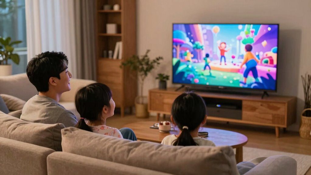 A wide viewing angle can impact color accuracy, but it generally maintains good color consistency across the screen. However, you might notice some viewing distortions at extreme angles, which can affect how colors appear. For family movie nights, a display with a good wide viewing angle guarantees everyone sees consistent colors and minimal distortions, making the experience more enjoyable for all, no matter where they sit.