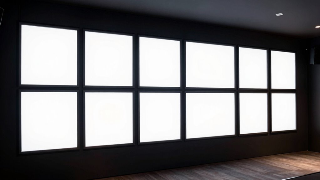 Ambient light conditions considerably impact fixed frame screens’ performance. Bright rooms wash out images, reducing contrast and clarity, making it harder to enjoy a vivid picture. Dim environments enhance contrast, deepen blacks, and boost overall picture quality. I recommend controlling ambient light through curtains or strategic lighting to get the best viewing experience. Remember, the darker the room, the better your projector screen will perform, delivering sharp, vibrant images every time.