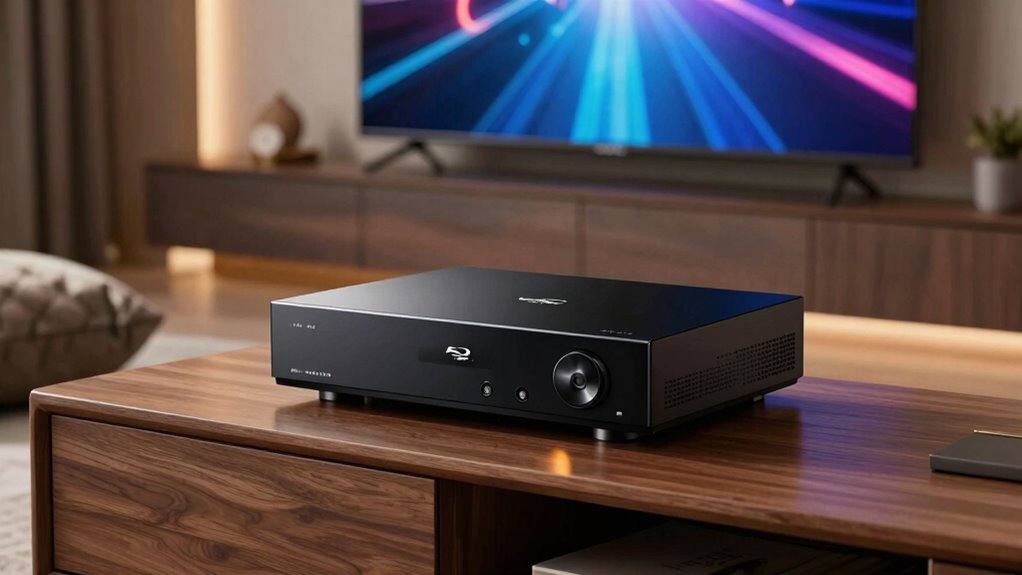 In the end, choosing the right high-end 4K Blu-ray player under $2000 comes down to your specific needs and preferences. Whether you crave Dolby Vision, HDR10+, or seamless network features, there’s a top-tier model for you. Don’t let your choices be as intimidating as charting a labyrinth—think of it like selecting a vintage record player, but for your digital age. Trust your instincts, and enjoy your cinematic journey!