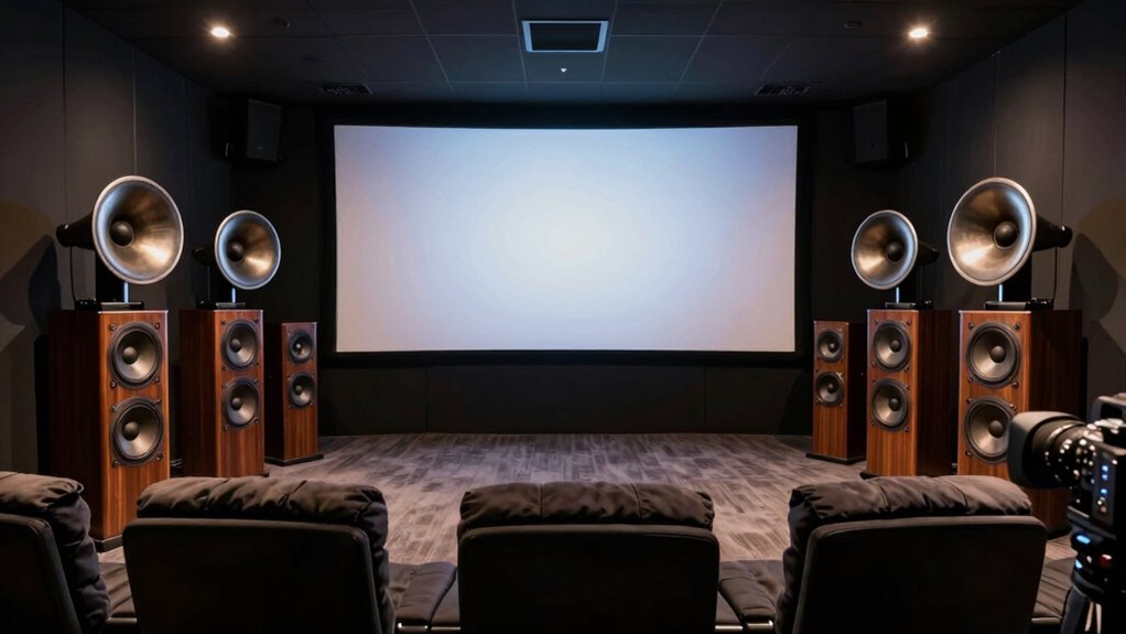 Choosing the right horn speakers is like tuning a finely crafted instrument—you want clarity, power, and harmony. I once upgraded my setup, and suddenly, every movie scene felt like I was front and center in the action. With options under $3000, you’ll find a speaker that brings your home theater to life, making every moment immersive. Trust me, investing in quality sound transforms your space into a personal cinema—don’t settle for less!