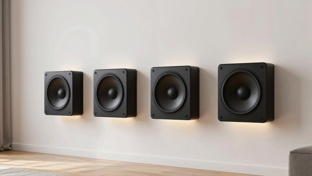 In-wall speakers substantially influence room acoustics and sound quality by blending seamlessly into walls, reducing clutter and reflections. I’ve found that properly installed speakers improve clarity, imaging, and bass response, making the sound feel more immersive. However, I also notice that room size, wall material, and placement matter greatly. When adjusted correctly, in-wall speakers enhance the overall listening experience without sacrificing sound quality or aesthetic appeal.