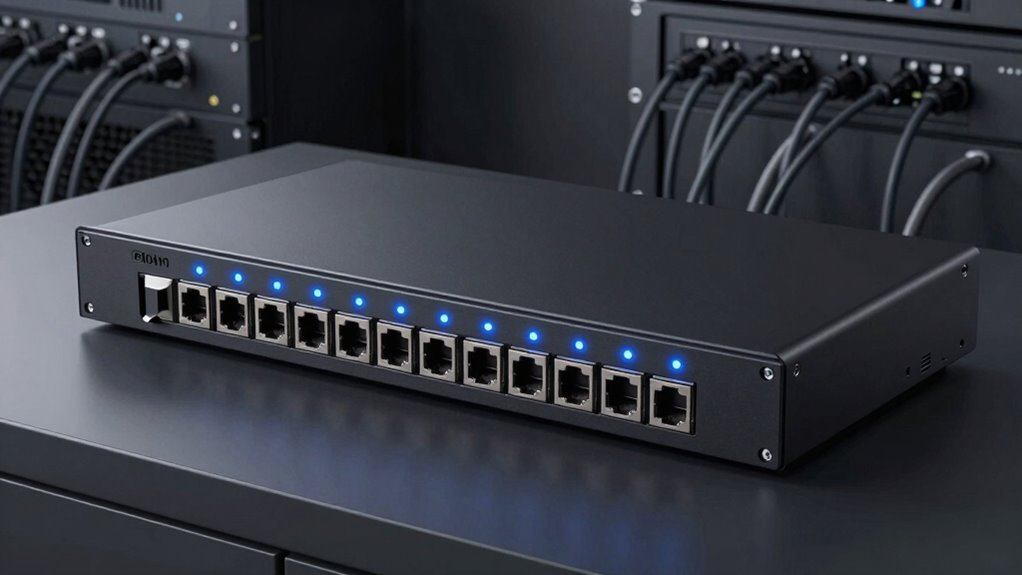 In wrapping up, selecting the right managed switch truly enhances your whole-home AV experience without overwhelming your space. With thoughtful consideration, you can effortlessly create a seamless, reliable network that elevates your entertainment. Remember, the perfect switch is like a quiet conductor—subtle yet essential. Trust your instincts and choose one that aligns with your needs, and you’ll enjoy a beautifully harmonious home AV setup that feels both effortless and refined.