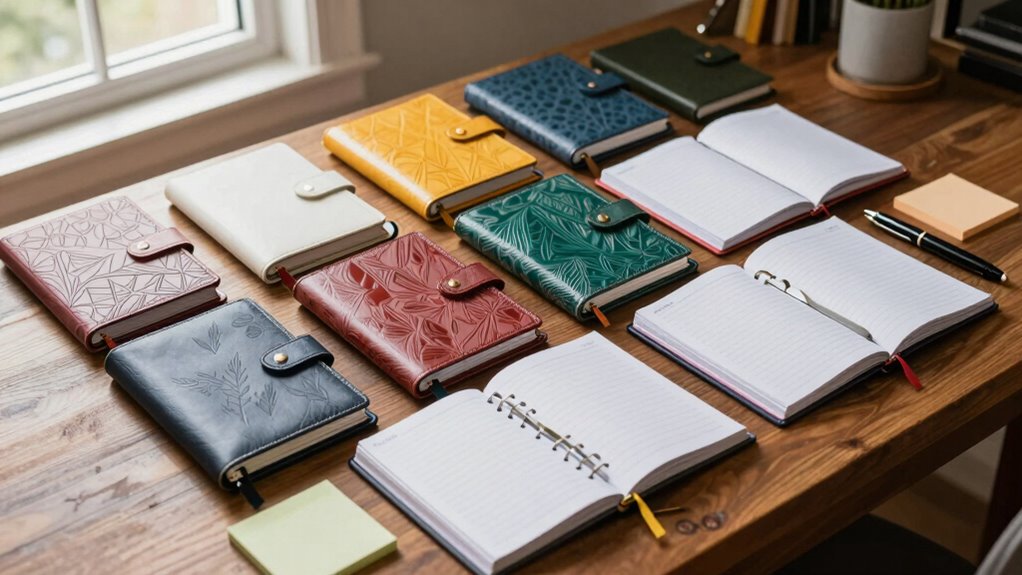 Are you looking for a planner that’s easy to carry around every day? The size and portability of your planner are key factors to contemplate. Smaller planners, around 6.3″ x 8.5″, are highly portable and perfect for on-the-go use, fitting easily into bags or pockets. These lightweight options won’t add bulk to your daily essentials, making them convenient for busy schedules. Larger sizes, like 8.5″ x 11″, offer more space for notes, detailed schedules, and goals but can be less portable. Choosing a size that matches your lifestyle helps guarantee you can access your planner whenever needed without hassle. Focus on what fits comfortably into your routine and belongings, so staying organized remains simple and stress-free.