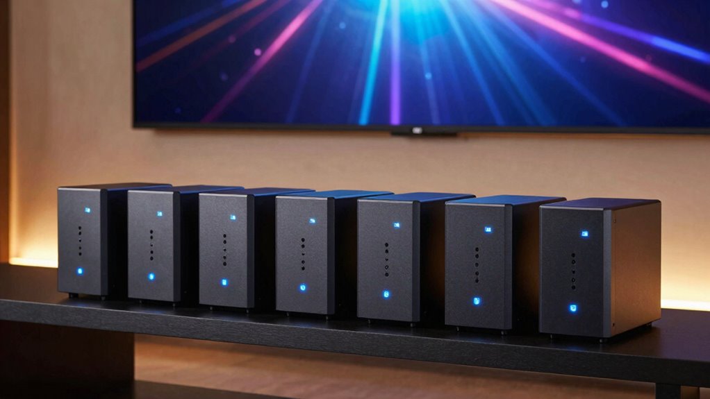 Choosing the right SSD NAS for your silent home theater truly enhances your media experience, blending quiet operation with speedy access. With options like UGREEN’s 4-Bay or Asustor’s all-flash models, you’re covered whether you need storage, performance, or both. So, isn’t it time to elevate your home theater setup and enjoy seamless, silent streaming? Investing in a quality SSD NAS guarantees your entertainment remains effortless and whisper-quiet.