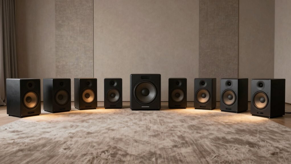 Yes, you can definitely use multiple smaller subwoofers instead of one large unit. I’ve found that spreading out smaller subs helps distribute bass more evenly throughout the room, reducing the impact on neighbors. Plus, it gives you more control over sound placement, which is great for shared walls. Just make sure they’re well-calibrated to avoid phase issues and guarantee smooth, powerful bass without disturbing your neighbors.